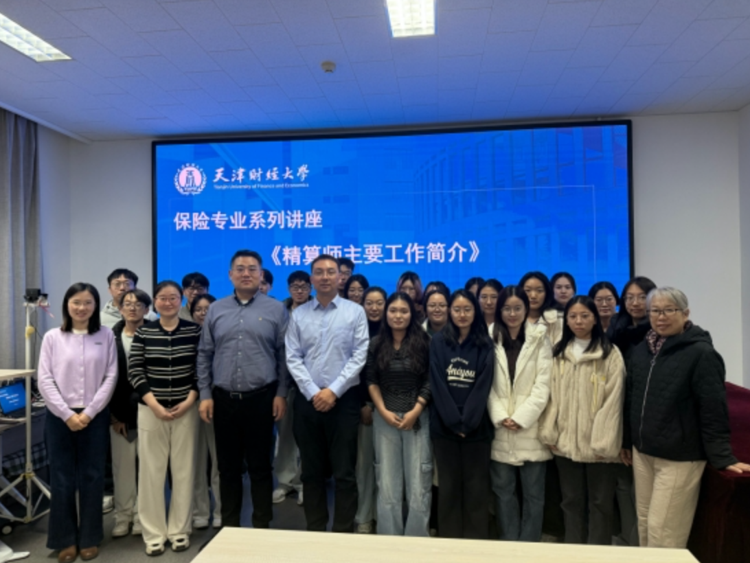 为帮助金融学子清晰认知精算师职业定位,明确专业学习与职业发展方向,2025年11月28日,天津财经大学金融学院在N4-110举办专题讲座。中国滨海金融协同创新中心研究员刘翠受邀参加讲座培训。本次讲座特邀渤海财产保险股份有限公司产品精算部副总经理、中国正精算师吴德杰先生,以《精算师的主要工作简介》为题,为保险硕士师生带来一场兼具专业性与实用性的分享,金融学院保险系教师王愫新主持讲座。